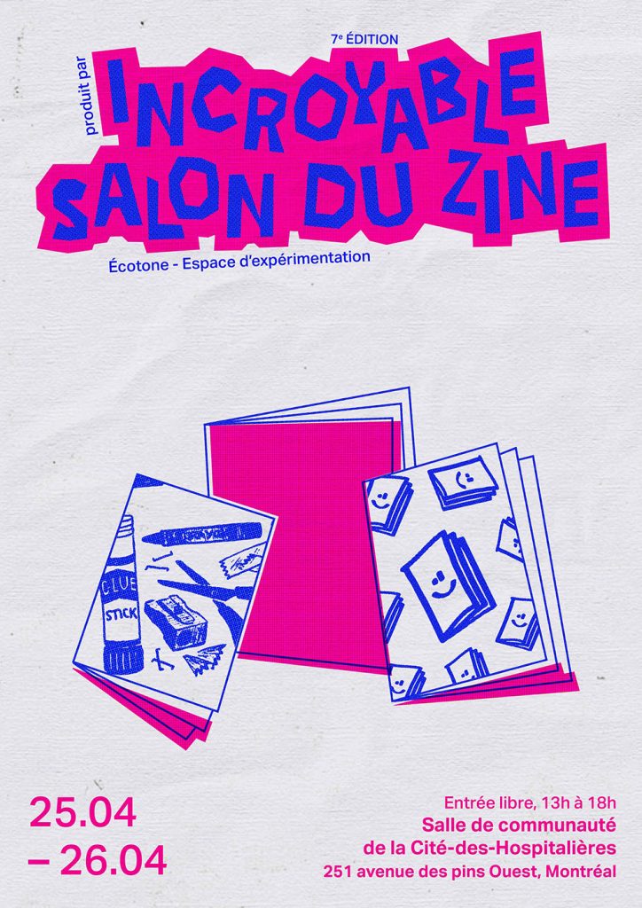 Zine zine zine, le 13-14 décembre de 13h à 18h, à l’Incroyable Salon du Zine! À la Cité des hospitalières, 251 avenue des Pins à Montréal, entrée gratuite.